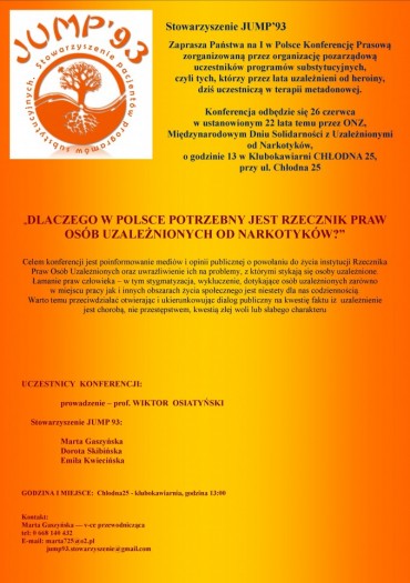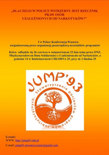 Stowarzyszenie JUMP’93 powstało jesienią 2007 roku, w Warszawie, z inicjatywy osób objętych terapią substytucyjną.