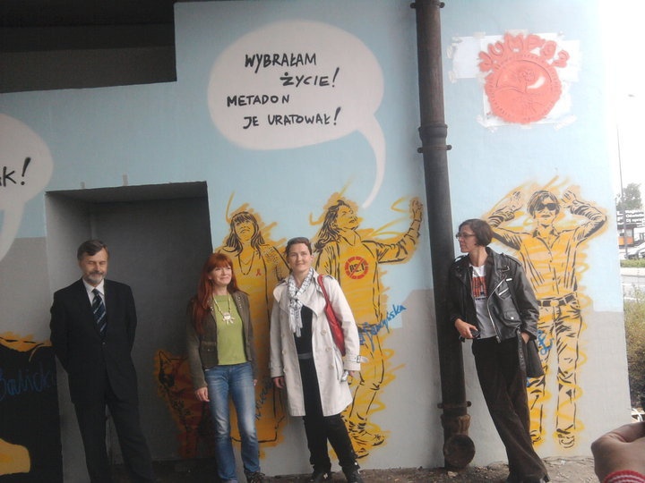 W ramach solidarności z uzależnionymi, na graffiti występują także dr Karina Chmielewska z IPIN, Kasia Malinowska – Sempruch z Global Drug Policy program OSI, poseł Marek Balicki, muzyk Tomasz Lipiński i prof. Wiktor Osiatyński.